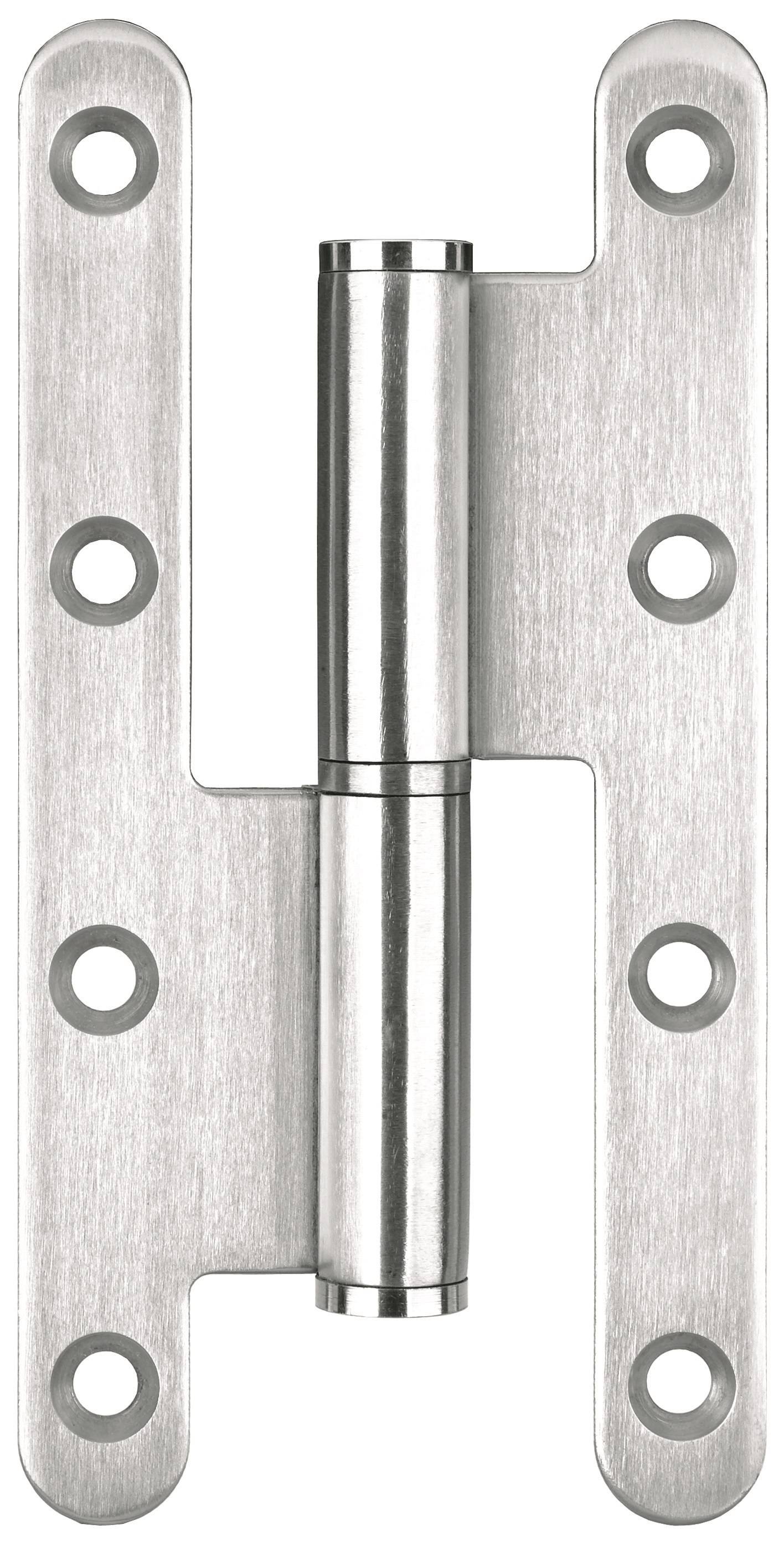 1/2 Paumelle EXS 1.61-F, 140*70 bouts ronds. Femelle droite inox brossé, nœud diamètre 14 mm, coins arrondis sans bague d'usure de 3 mm