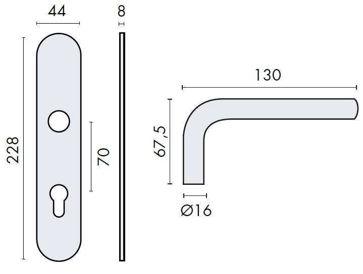Paire de béquilles sur plaque LOGINOX C 16 mm fonction clé L, à sous construction métallique sans ressort de rappel, offrant 3 points de fixations permettant la pose de vis traversantes, entraxe 195 mm